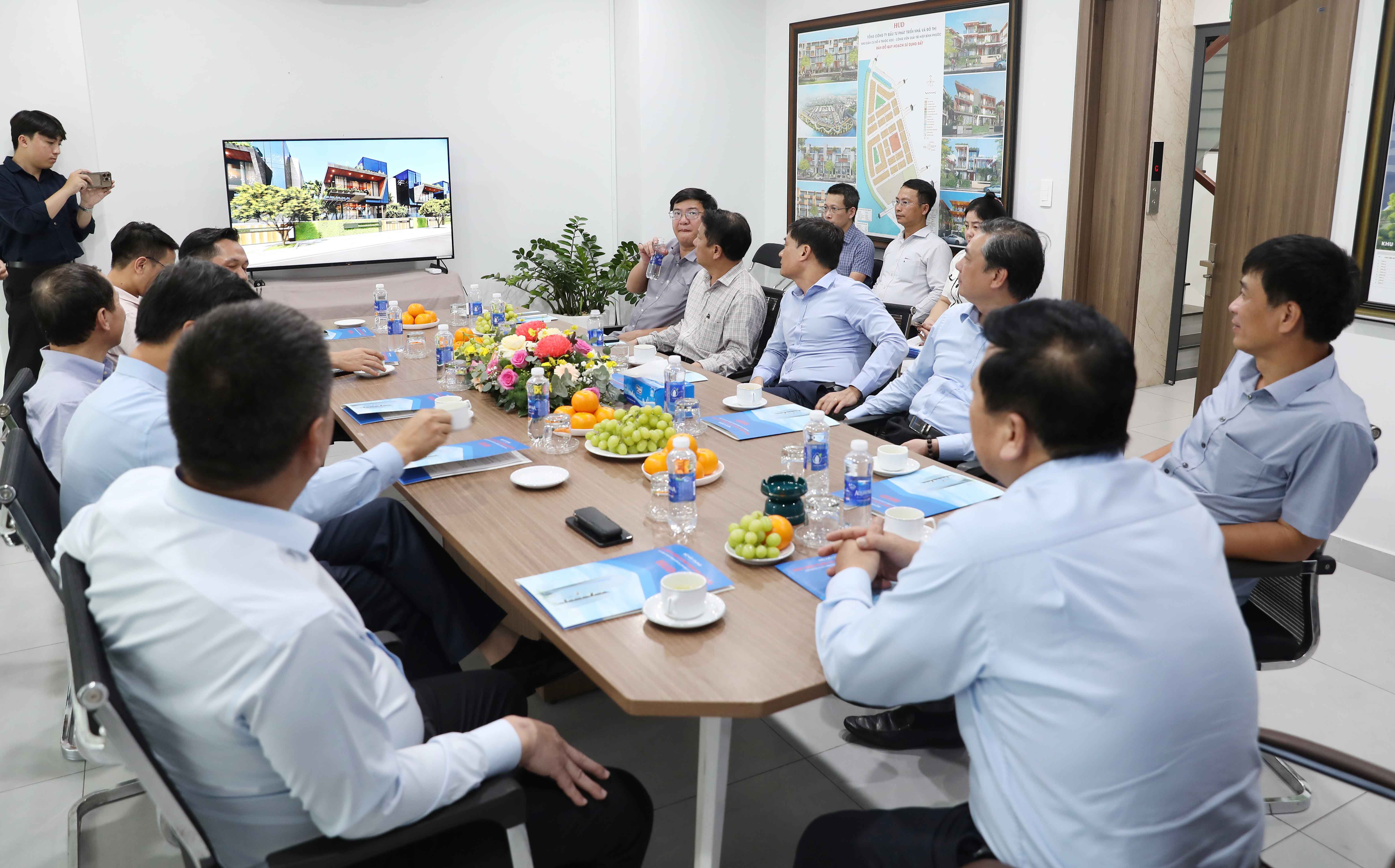 Tham gia đoàn công tác có Thứ trưởng Bộ Xây dựng Phạm Minh Hà, cùng lãnh đạo Văn phòng, các Cục, Vụ chuyên môn thuộc Bộ Xây dựng. Về phía Tổng công ty HUD, tham dự và làm việc với đoàn có đồng chí Đậu Minh Thanh - Ủy viên Ban Chấp hành Đảng bộ Chính phủ, Bí thư Đảng ủy, Chủ tịch Hội đồng thành viên Tổng công ty, cùng đại diện lãnh đạo các ban, đơn vị trực thuộc.