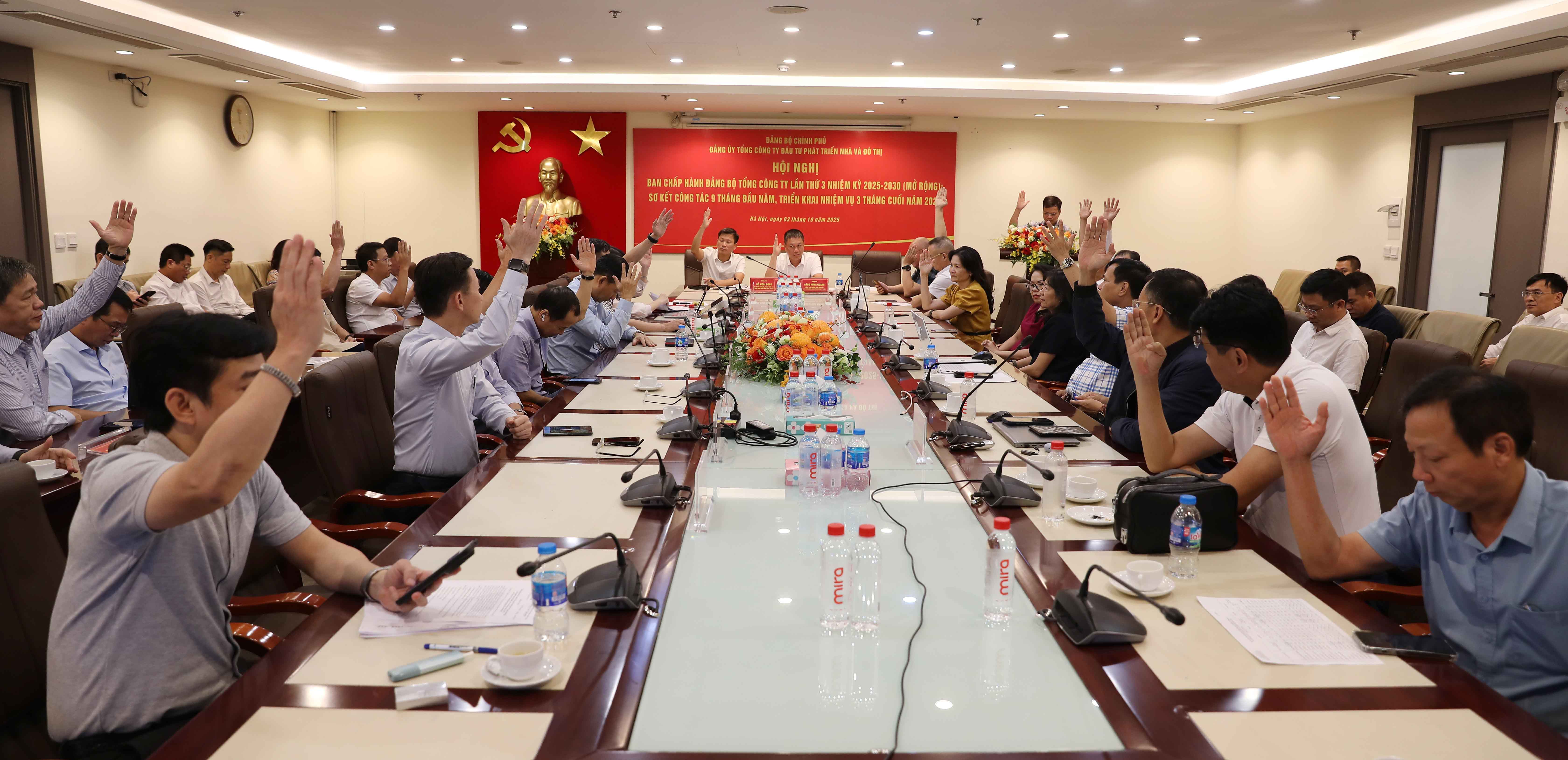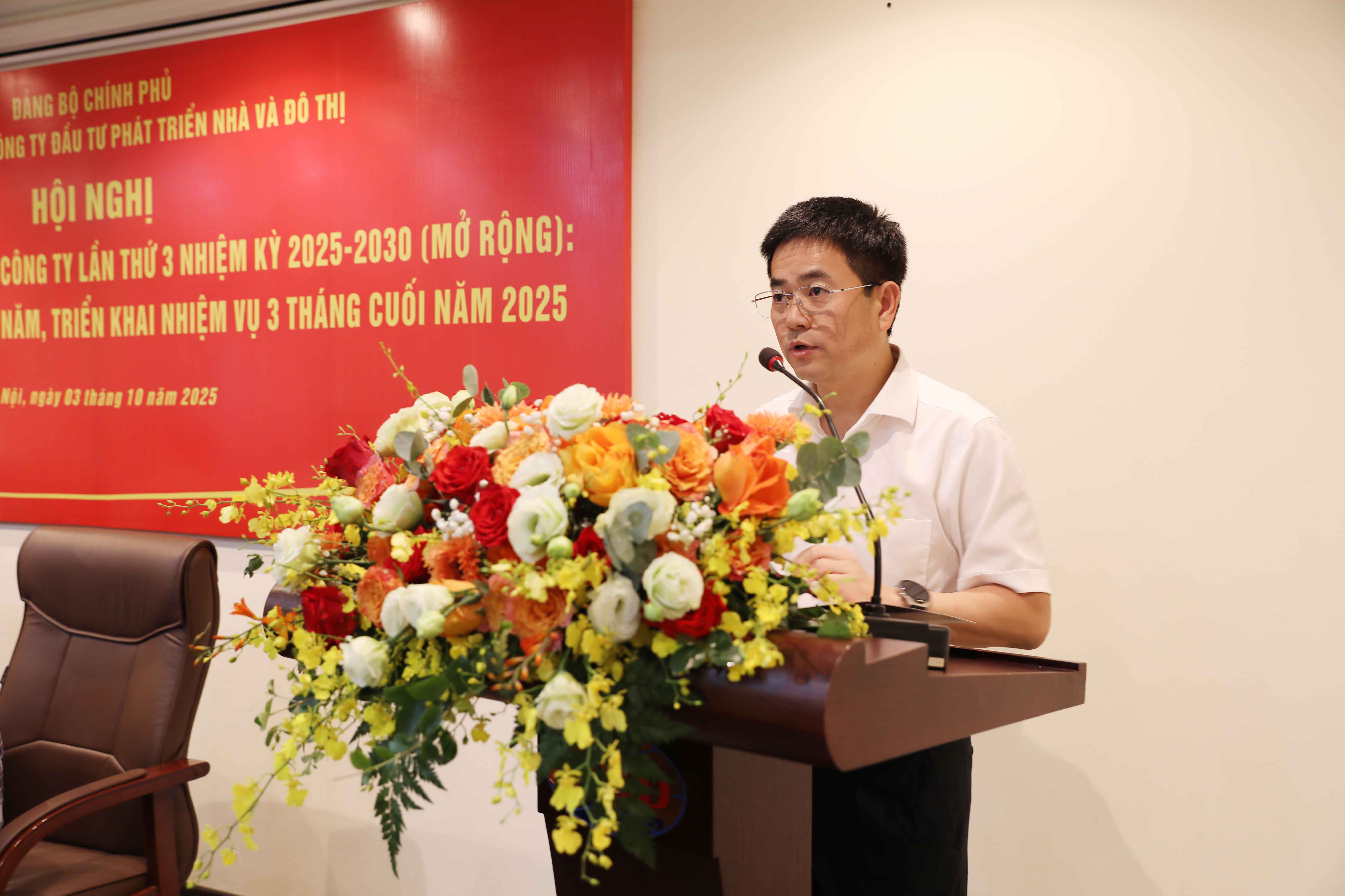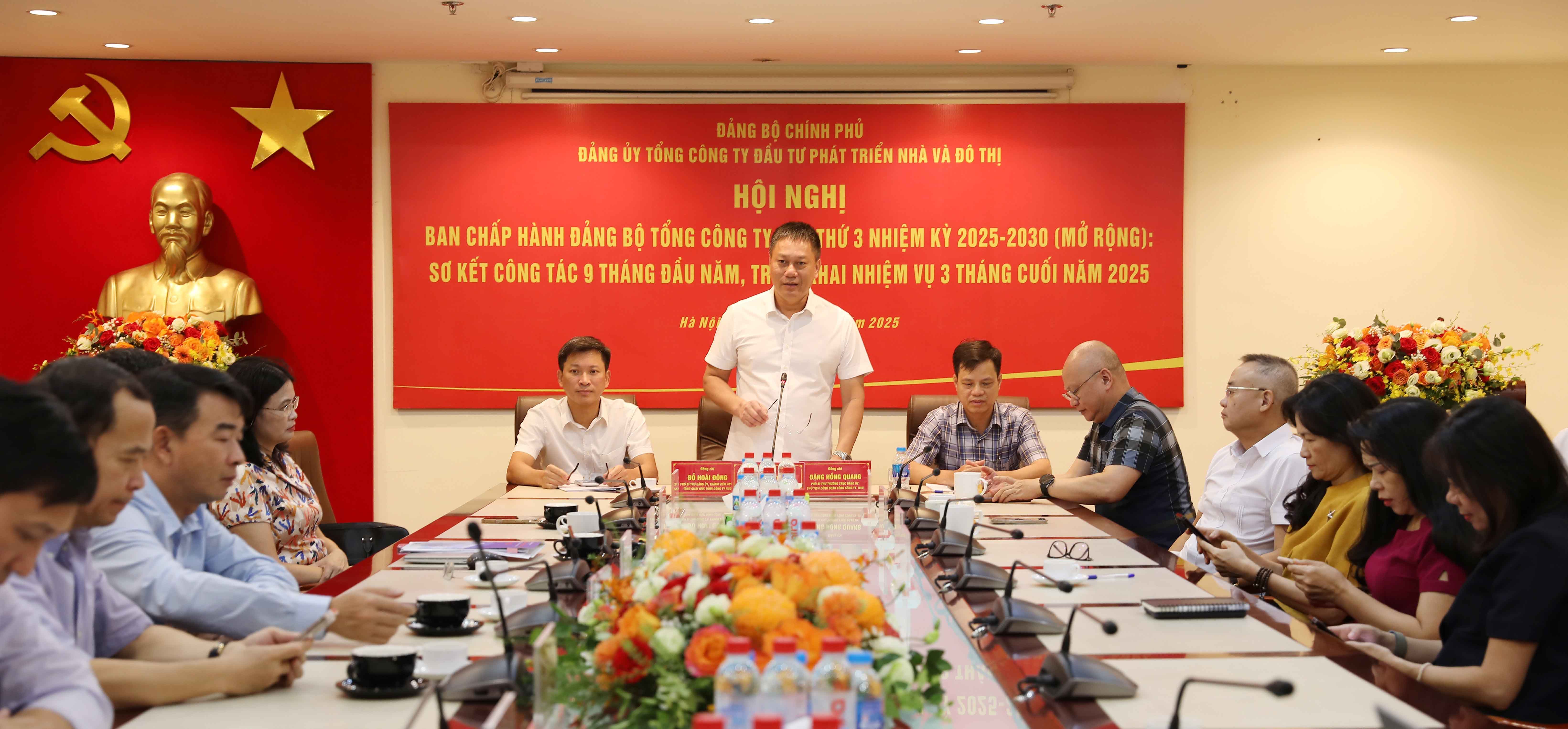 Ngày 3/10/2025, tại Hà Nội, Đảng ủy Tổng công ty Đầu tư phát triển nhà và đô thị (HUD) đã tổ chức Hội nghị Ban Chấp hành Đảng bộ lần thứ 3 (mở rộng) nhiệm kỳ 2025 - 2030 để sơ kết công tác 9 tháng đầu năm và triển khai nhiệm vụ 3 tháng cuối năm 2025. Hội nghị do các đồng chí: Đậu Minh Thanh - Ủy viên BCH Đảng bộ Chính phủ, Bí thư Đảng ủy, Chủ tịch HĐTV Tổng công ty; Đỗ Hoài Đông - Phó Bí thư Đảng ủy, Thành viên HĐTV, Tổng giám đốc Tổng công ty; Đặng Hồng Quang - Phó Bí thư Thường trực Đảng ủy, Chủ tịch Công đoàn Tổng công ty, chủ trì.
