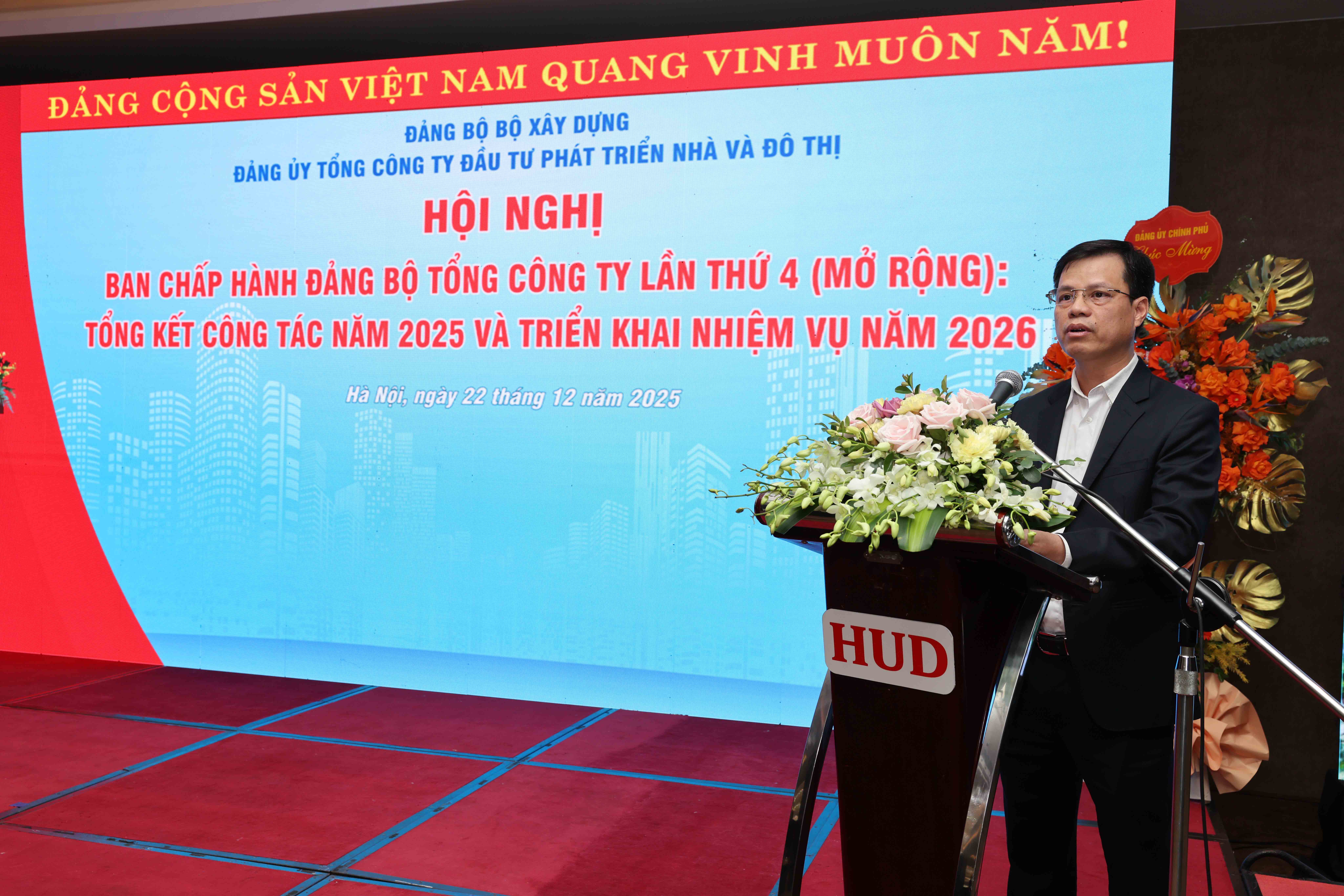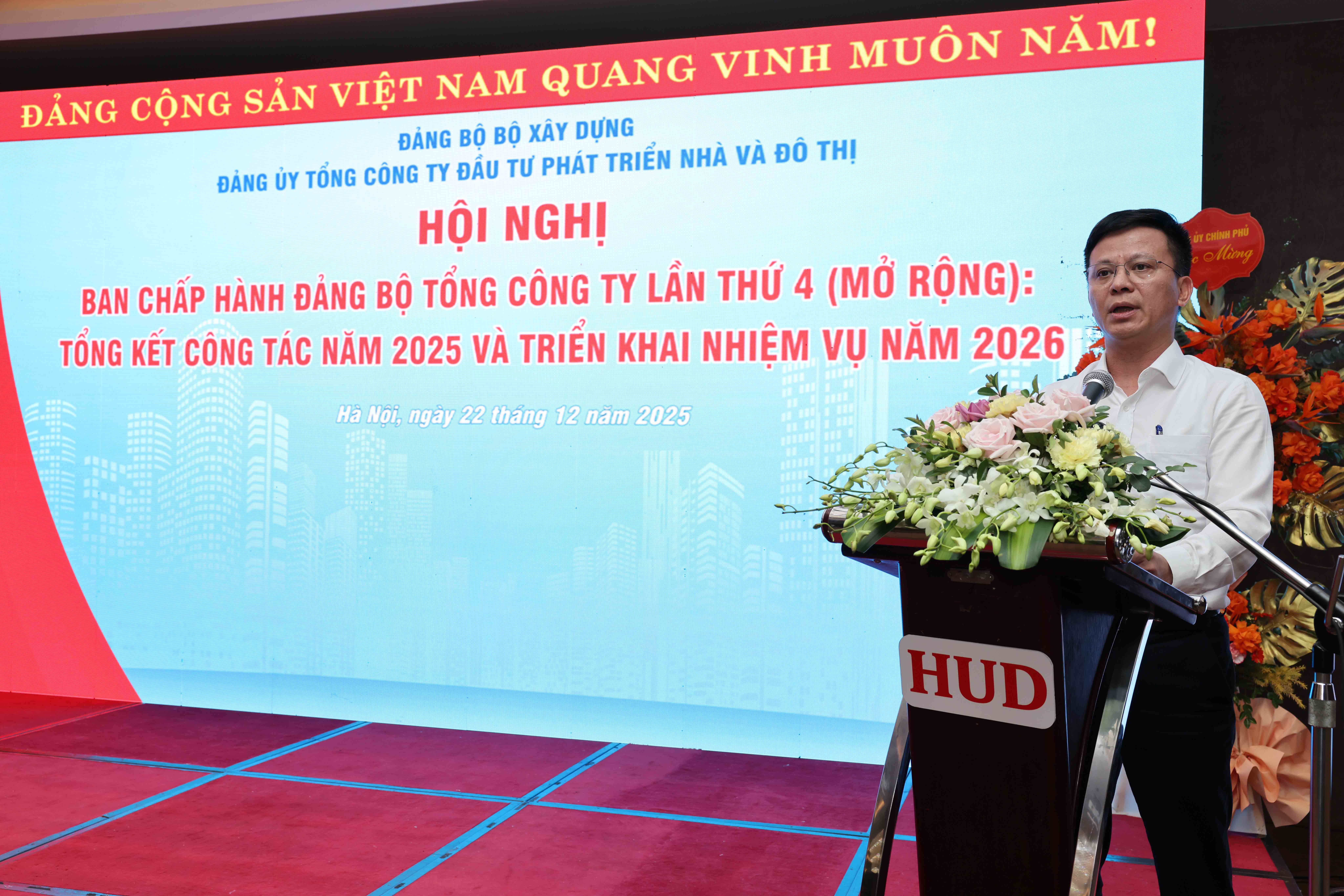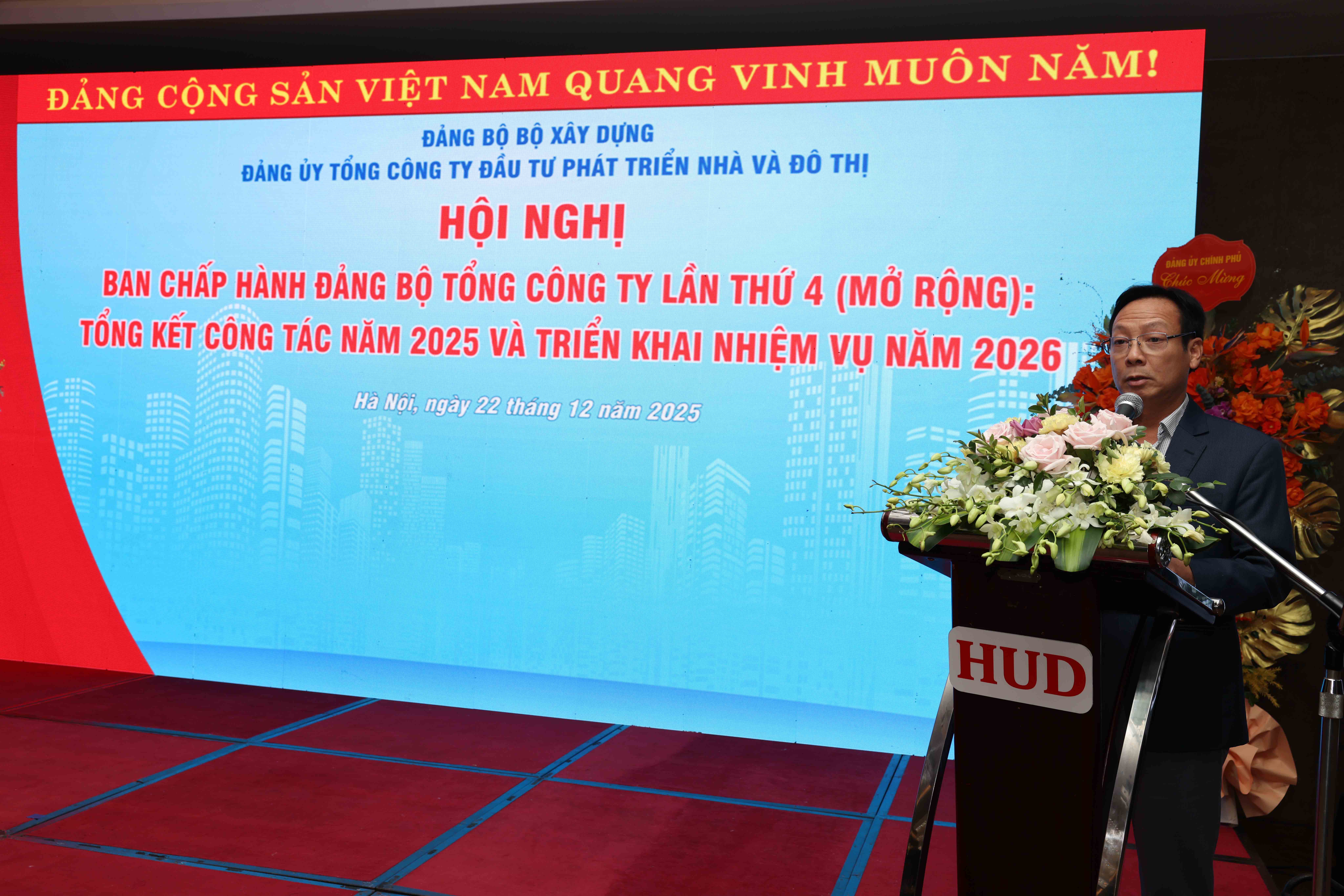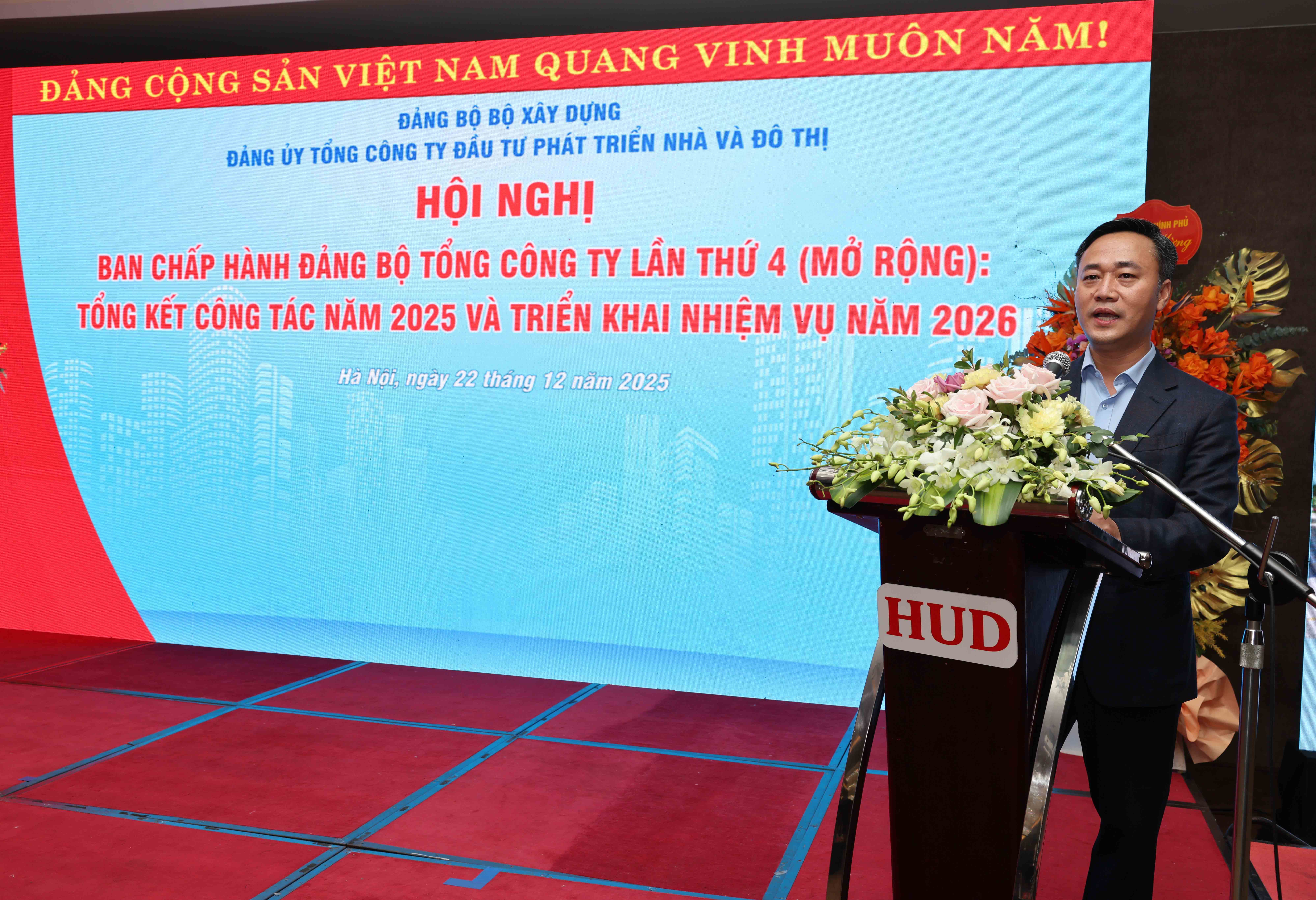 Phát biểu chỉ đạo tại Hội nghị, đồng chí Nguyễn Việt Hùng – Ủy viên Ban Thường vụ Đảng ủy, Thứ trưởng Bộ Xây dựng ghi nhận và biểu dương những kết quả toàn diện mà Đảng bộ và Tổng công ty HUD đã đạt được trong giai đoạn 2021–2025 và riêng năm 2025; đồng thời chỉ rõ một số tồn tại cần sớm khắc phục.