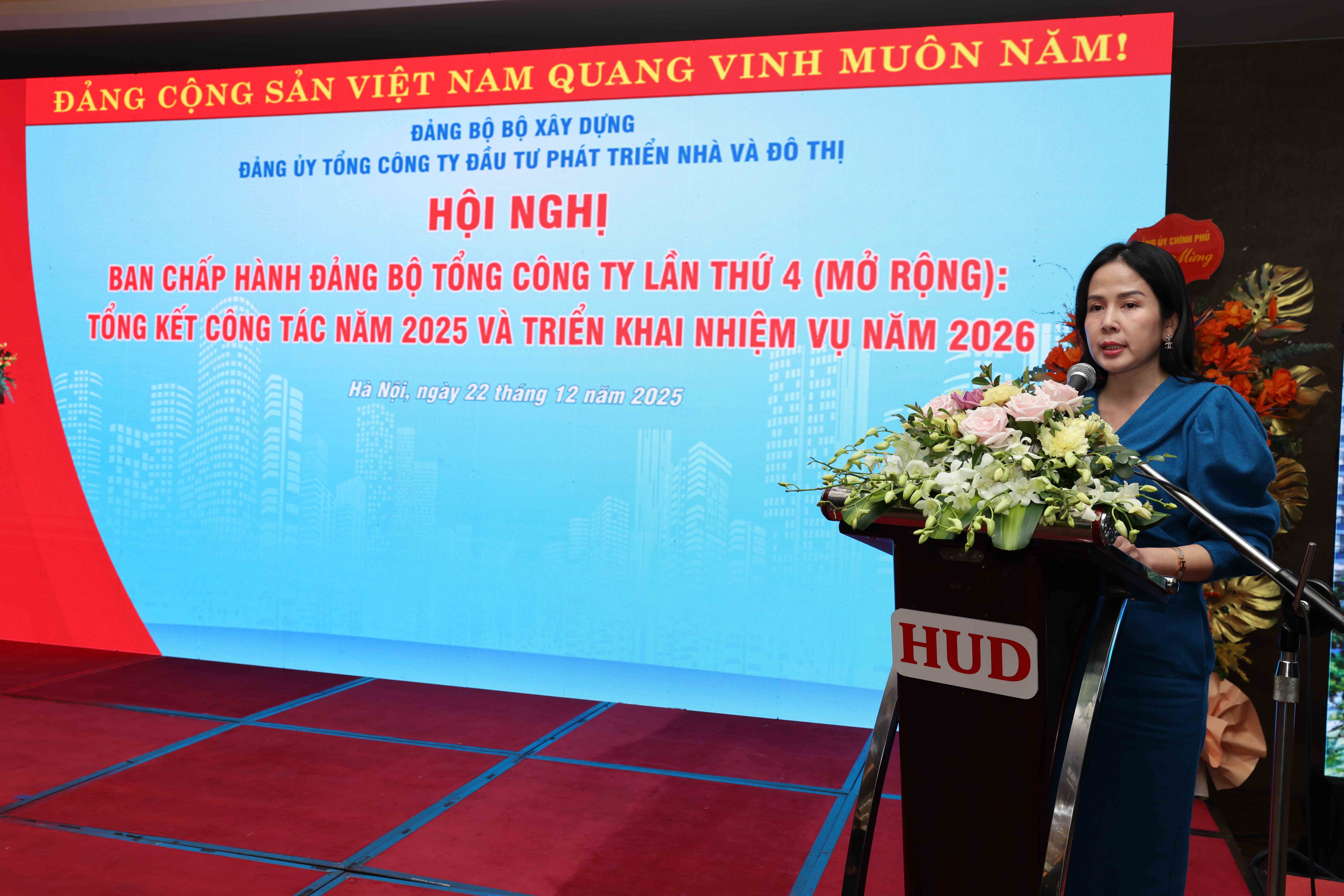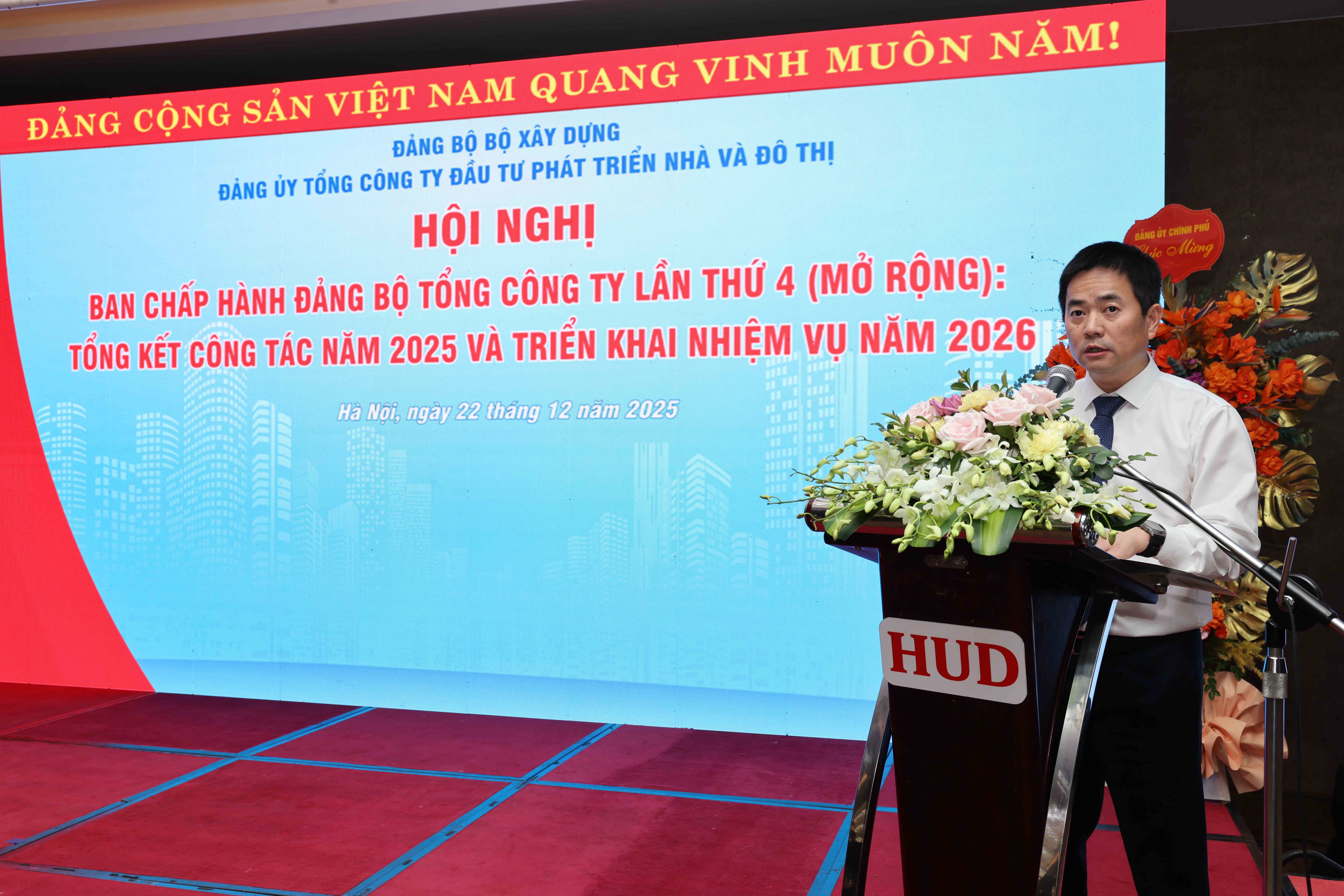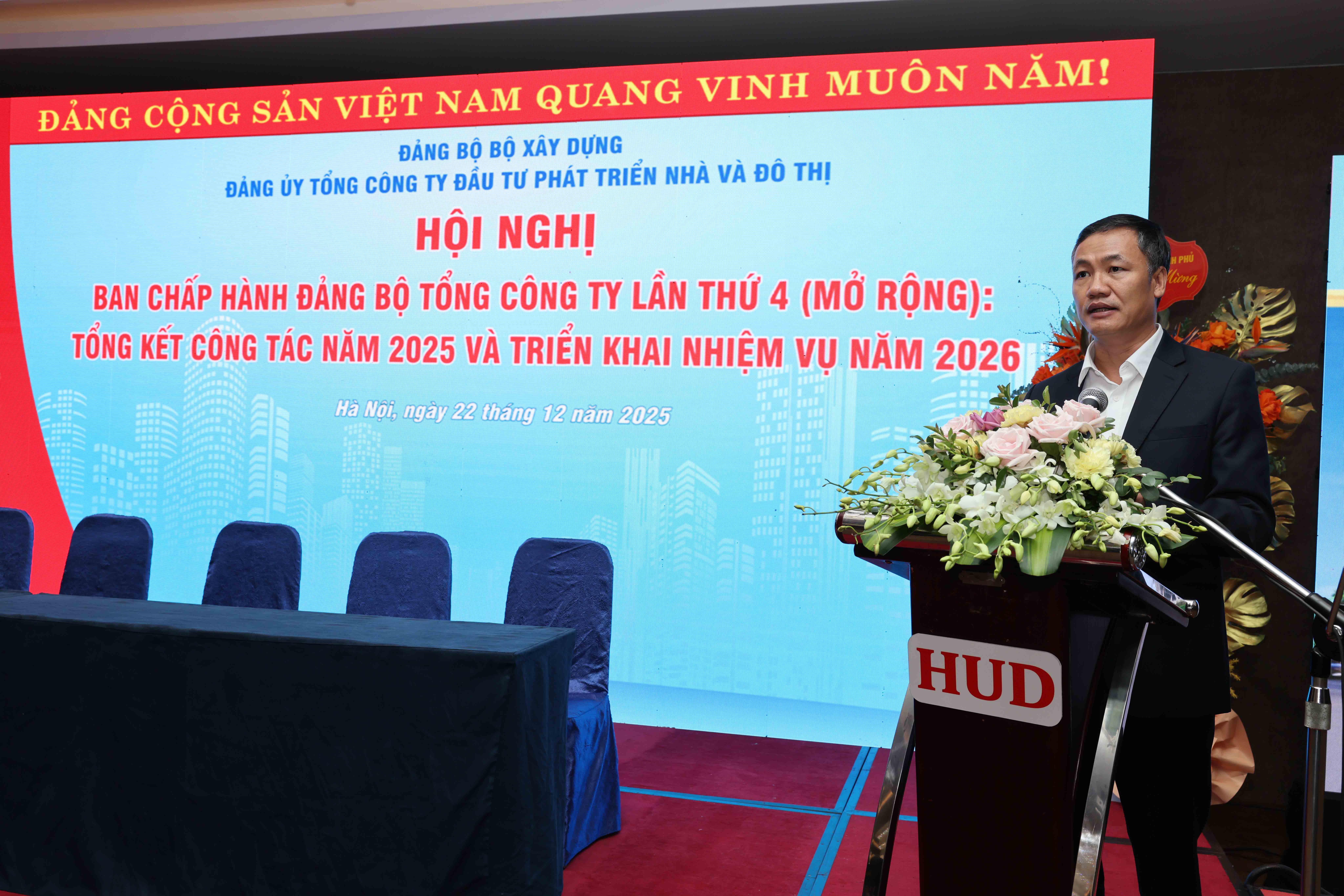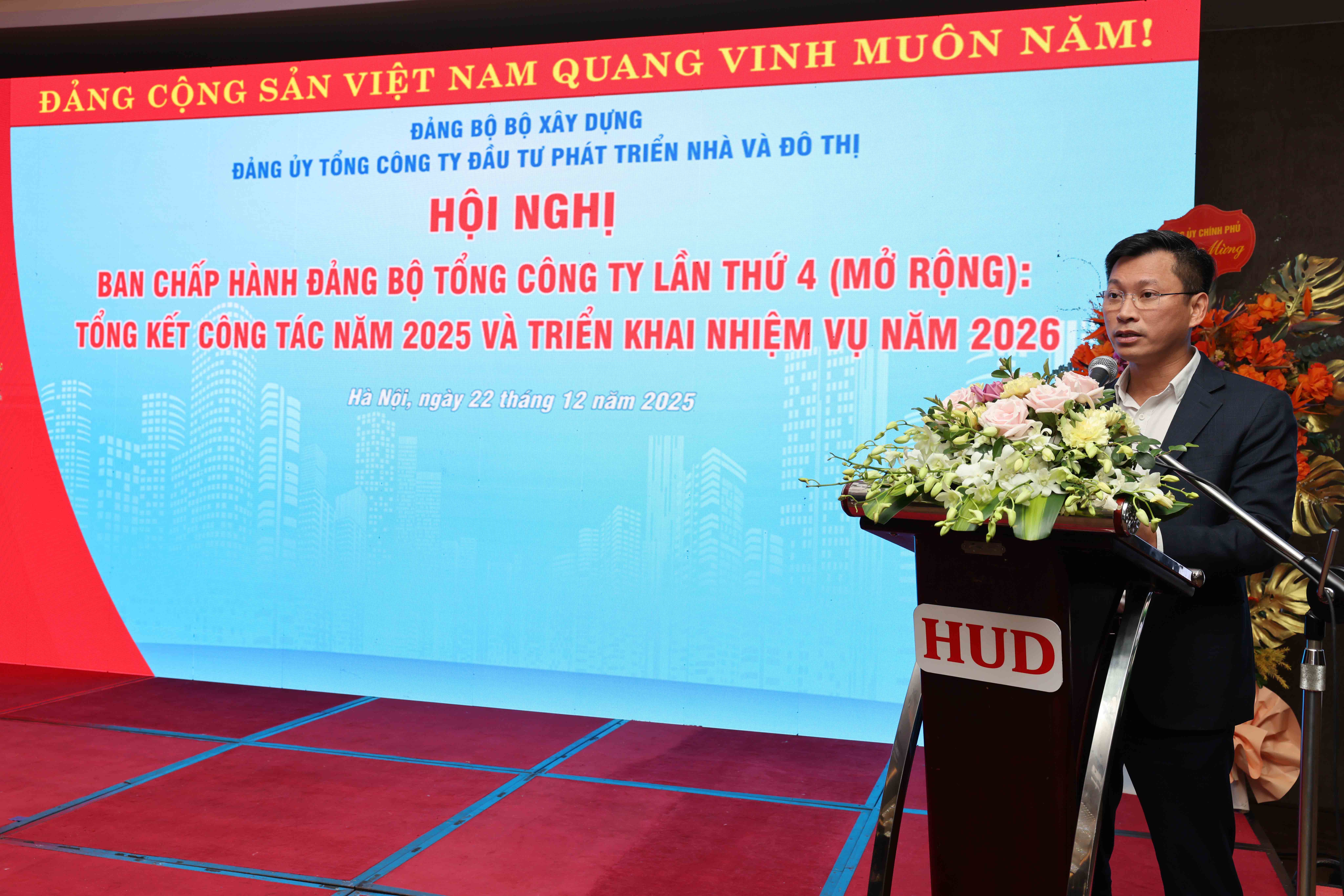 Phát biểu chỉ đạo tại Hội nghị, đồng chí Nguyễn Việt Hùng – Ủy viên Ban Thường vụ Đảng ủy, Thứ trưởng Bộ Xây dựng ghi nhận và biểu dương những kết quả toàn diện mà Đảng bộ và Tổng công ty HUD đã đạt được trong giai đoạn 2021–2025 và riêng năm 2025; đồng thời chỉ rõ một số tồn tại cần sớm khắc phục.
