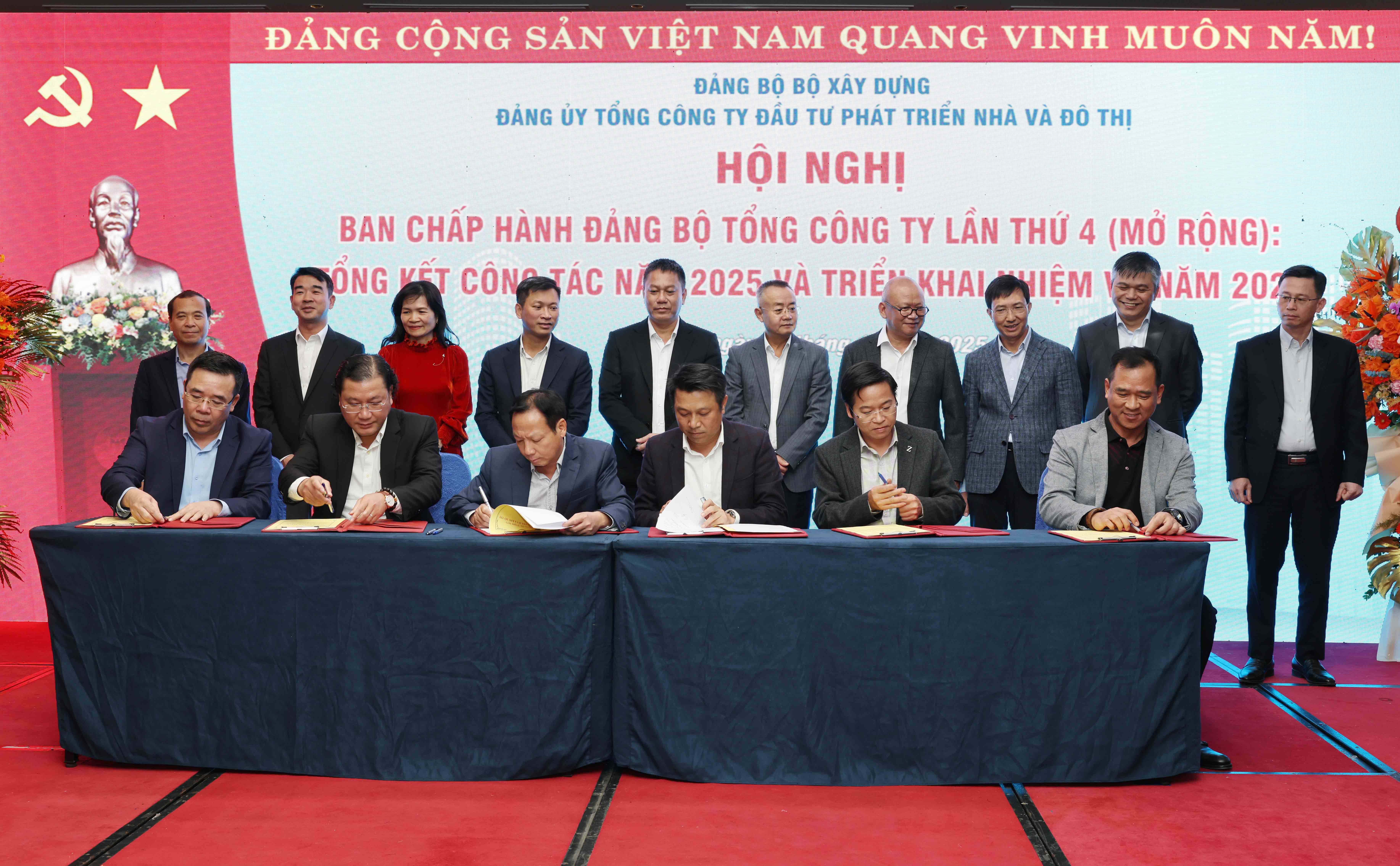 Sau phần phát biểu chỉ đạo của Thứ trưởng Bộ Xây dựng, Hội nghị đã tổ chức ký cam kết thực hiện kế hoạch sản xuất kinh doanh năm 2026 giữa lãnh đạo Tổng công ty với các đơn vị thành viên, thể hiện tinh thần trách nhiệm và quyết tâm trong tổ chức thực hiện nhiệm vụ.
