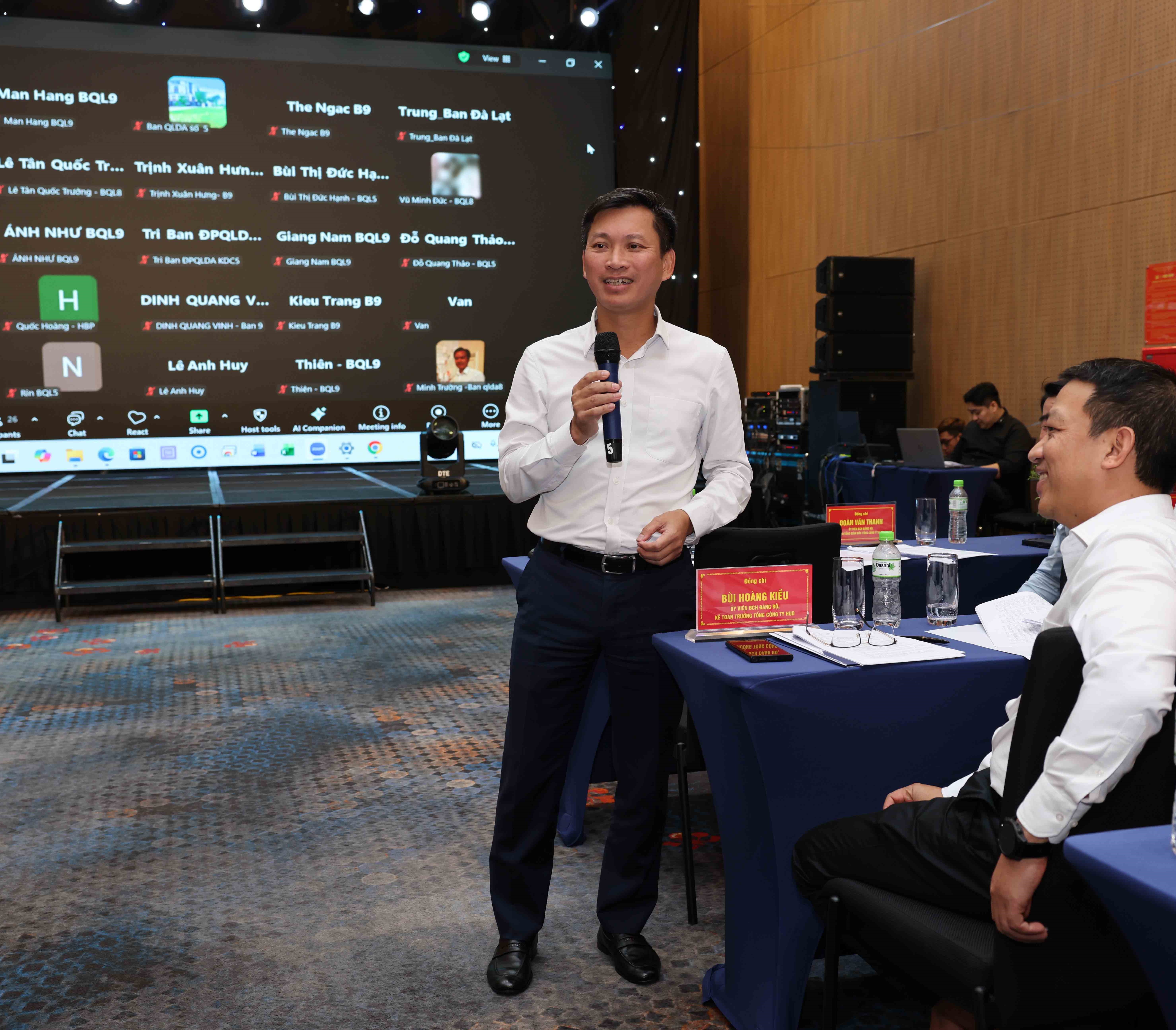 Báo cáo tại Hội nghị, đại diện Ban Kinh doanh đã nêu rõ bối cảnh thị trường bất động sản năm 2025 với nhiều khó khăn và biến động; tuy nhiên, nhờ sự chỉ đạo sát sao của Đảng ủy, Hội đồng thành viên, Ban Tổng Giám đốc cùng nỗ lực của toàn thể cán bộ, người lao động, Tổng công ty cơ bản hoàn thành và vượt kế hoạch công tác kinh doanh năm 2025. Công tác bán hàng, hỗ trợ khách hàng có chuyển biến tích cực; một số dự án trọng điểm được triển khai đúng tiến độ, đóng góp quan trọng vào kết quả kinh doanh chung và khẳng định vai trò của HUD trong thực hiện nhiệm vụ Bộ Xây dựng giao về phát triển nhà ở xã hội và khu đô thị mới.