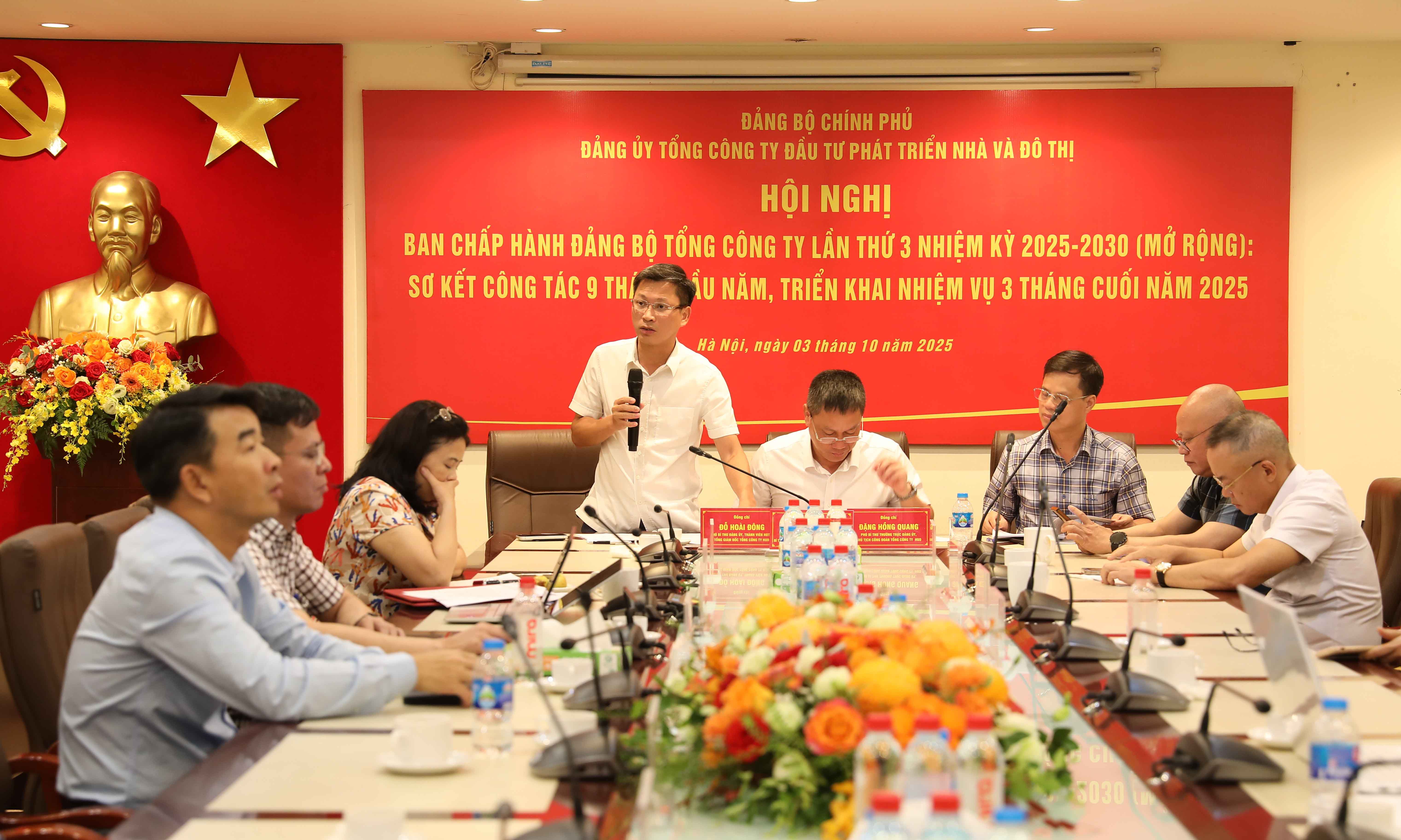 Ngày 3/10/2025, tại Hà Nội, Đảng ủy Tổng công ty Đầu tư phát triển nhà và đô thị (HUD) đã tổ chức Hội nghị Ban Chấp hành Đảng bộ lần thứ 3 (mở rộng) nhiệm kỳ 2025 - 2030 để sơ kết công tác 9 tháng đầu năm và triển khai nhiệm vụ 3 tháng cuối năm 2025. Hội nghị do các đồng chí: Đậu Minh Thanh - Ủy viên BCH Đảng bộ Chính phủ, Bí thư Đảng ủy, Chủ tịch HĐTV Tổng công ty; Đỗ Hoài Đông - Phó Bí thư Đảng ủy, Thành viên HĐTV, Tổng giám đốc Tổng công ty; Đặng Hồng Quang - Phó Bí thư Thường trực Đảng ủy, Chủ tịch Công đoàn Tổng công ty, chủ trì.