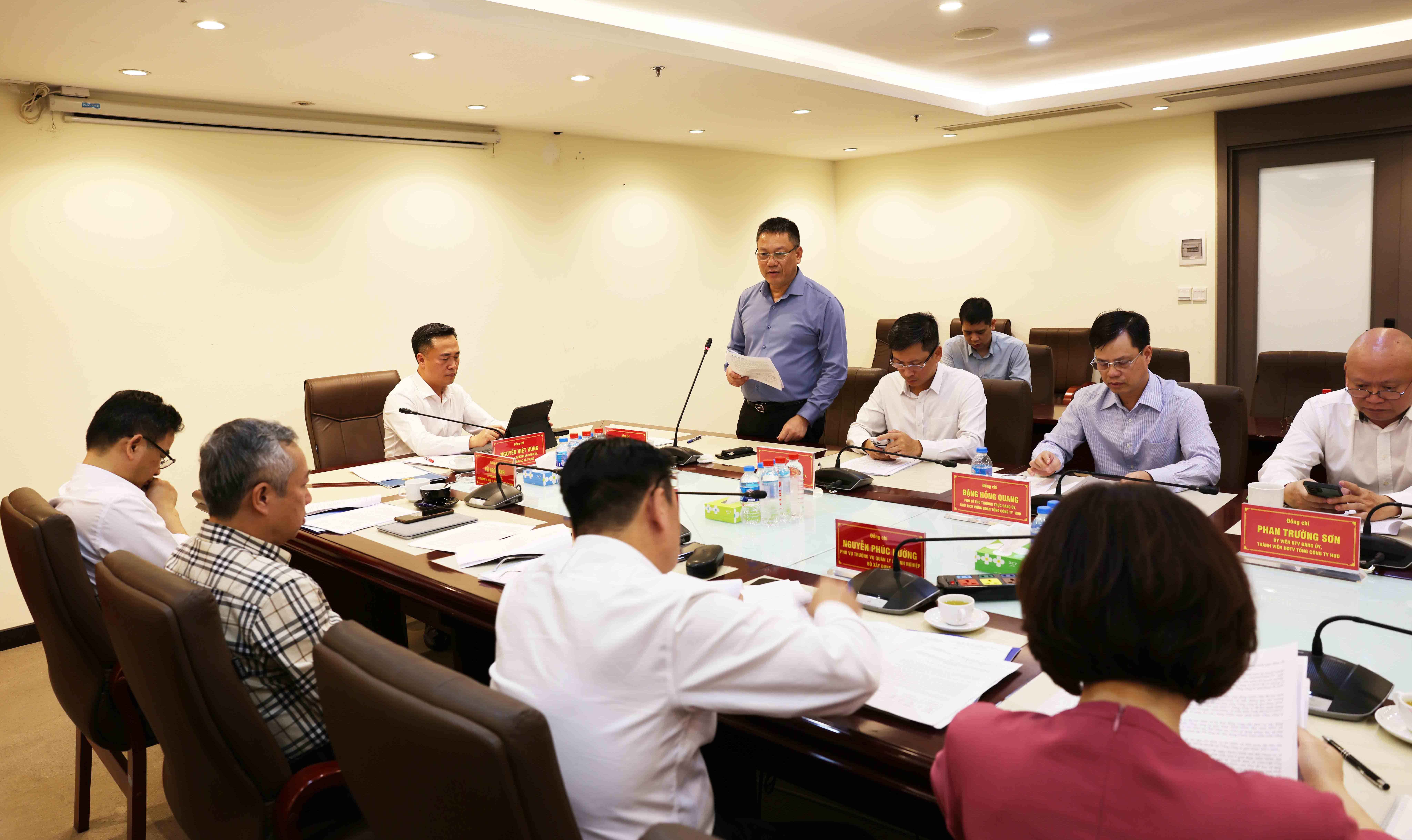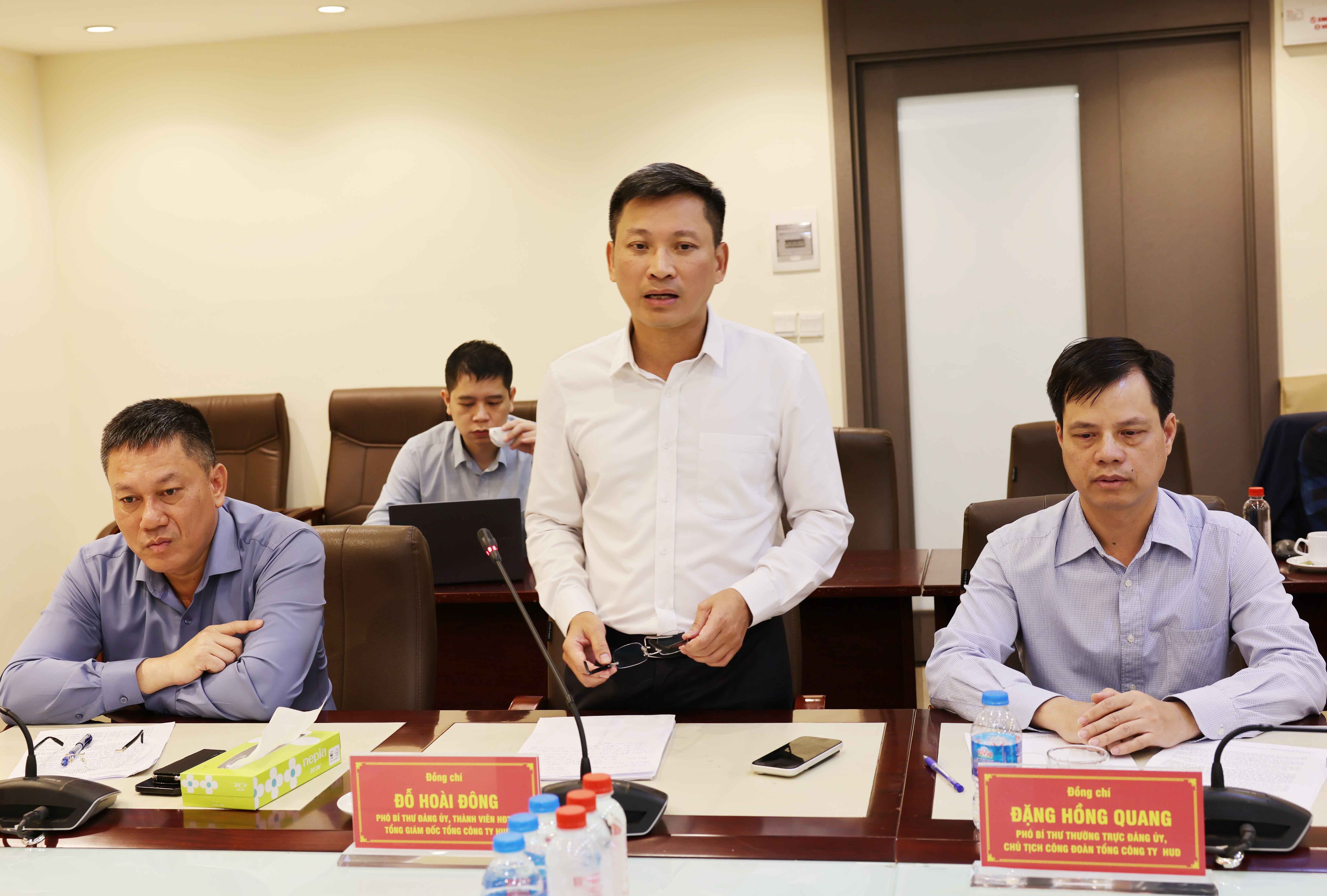 Về phía Tổng công ty HUD, tham dự buổi làm việc có đồng chí Đậu Minh Thanh - Bí thư Đảng ủy, Chủ tịch Hội đồng thành viên; đồng chí Đỗ Hoài Đông - Phó Bí thư Đảng ủy, Thành viên Hội đồng thành viên, Tổng Giám đốc; đồng chí Đặng Hồng Quang - Phó Bí thư thường trực Đảng ủy, Chủ tịch Công đoàn cùng các đồng chí trong Ban Thường vụ, thành viên Hội đồng thành viên, Kiểm soát viên, Ban Tổng giám đốc, Chánh Văn phòng Đảng ủy, Trưởng các ban chuyên môn.
