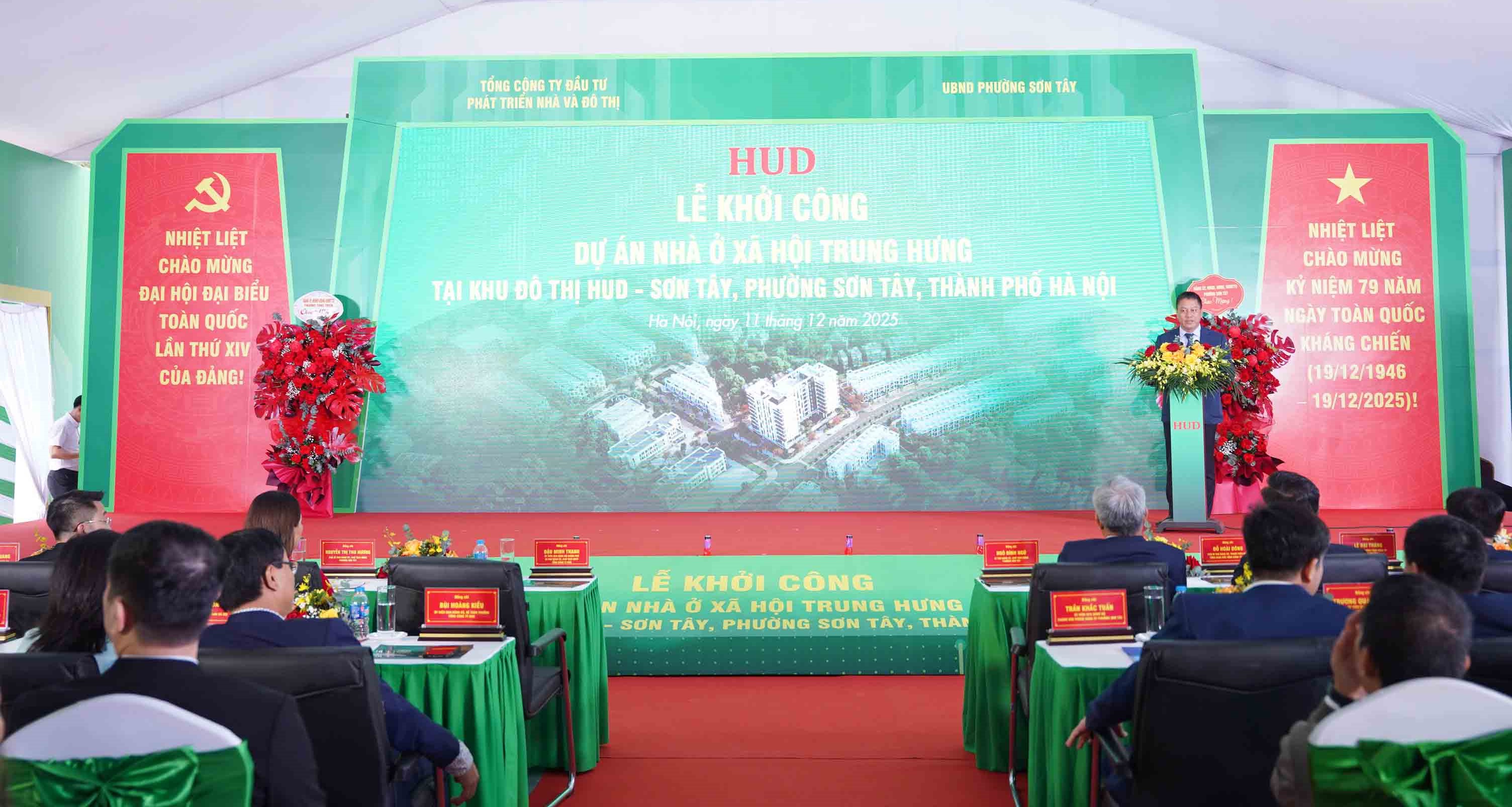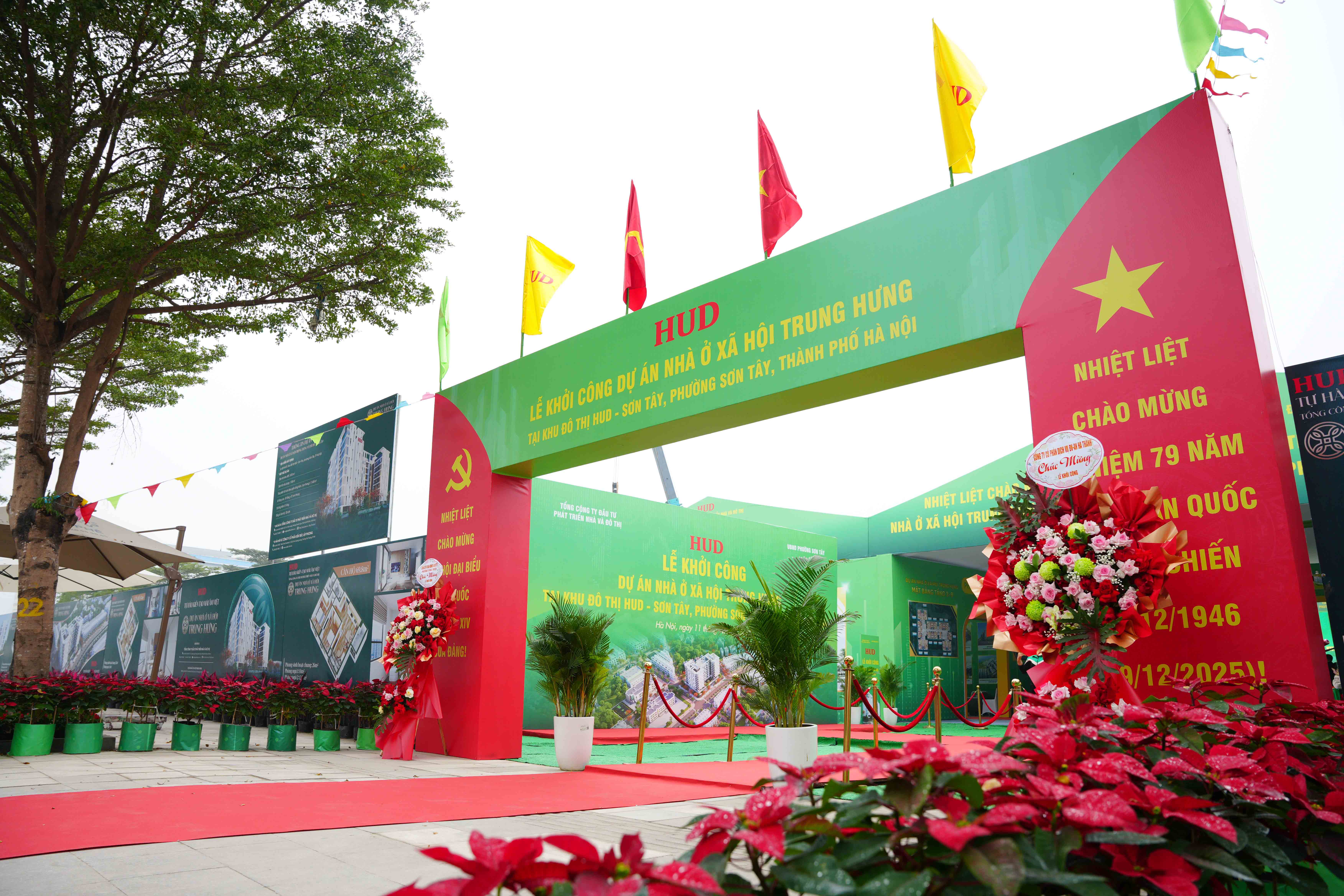Chào mừng Kỷ niệm 79 năm Ngày toàn quốc kháng chiến (19/12/1946-19/12/2025), tiến tới Đại hội đại biểu toàn quốc lần thứ XIV của Đảng, ngày 11/12/2025, Tổng công ty Đầu tư Phát triển nhà và đô thị (HUD) tổ chức khởi công Dự án nhà ở xã hội Trung Hưng tại lô đất HH-01 thuộc khu đô thị HUD - Sơn Tây, phường Sơn Tây, Hà Nội.
