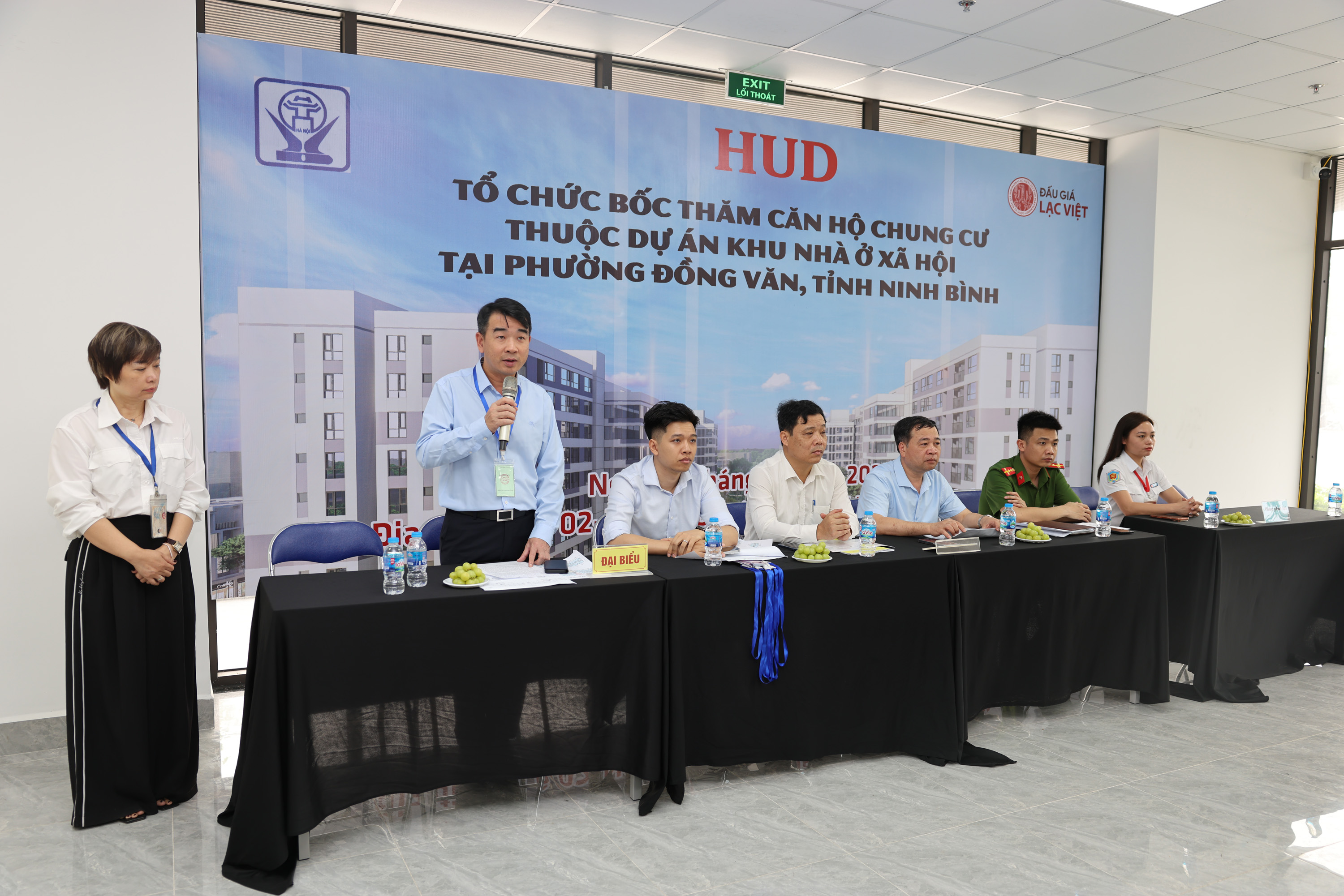 Ngày 20/4/2026, Tổng công ty Đầu tư phát triển nhà và đô thị (HUD) - chủ đầu tư Dự án Khu nhà ở xã hội tại phường Đồng Văn, tỉnh Ninh Bình đã tổ chức bốc thăm quyền mua căn hộ nhà ở xã hội, qua đó xác định vị trí và diện tích căn hộ cho các khách hàng đủ điều kiện theo quy định.